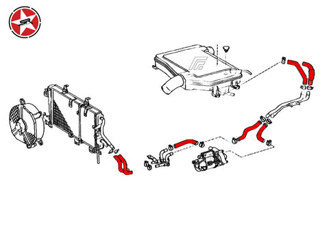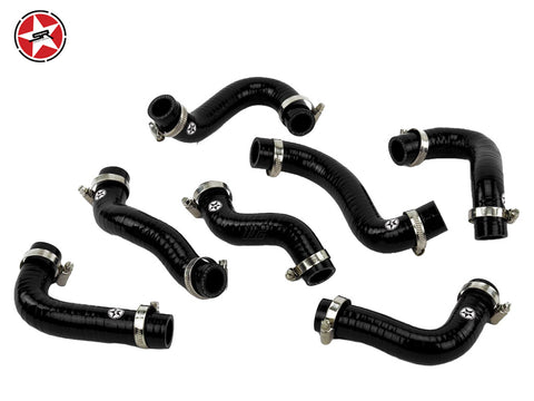 This high quality reinforced silicone hose kit replaces the 7 coolant hoses for the water to air charge cooler.