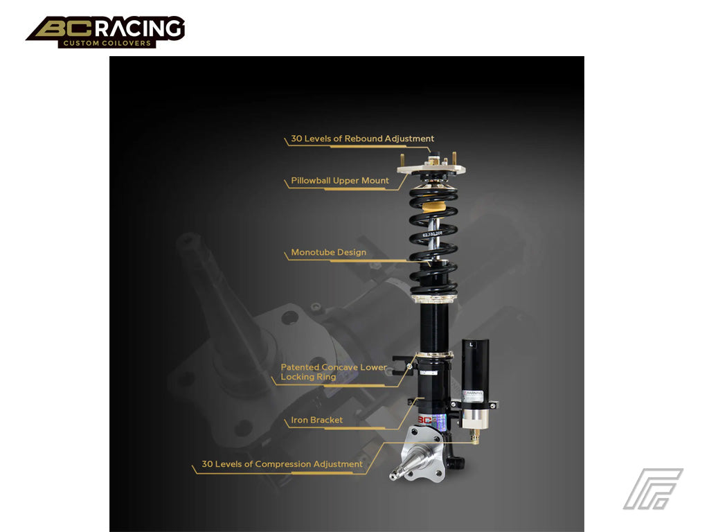 BC Racing 2 way adjustable coilovers are the external reservoir ER Series with separate compression and rebound damping adjustment.
